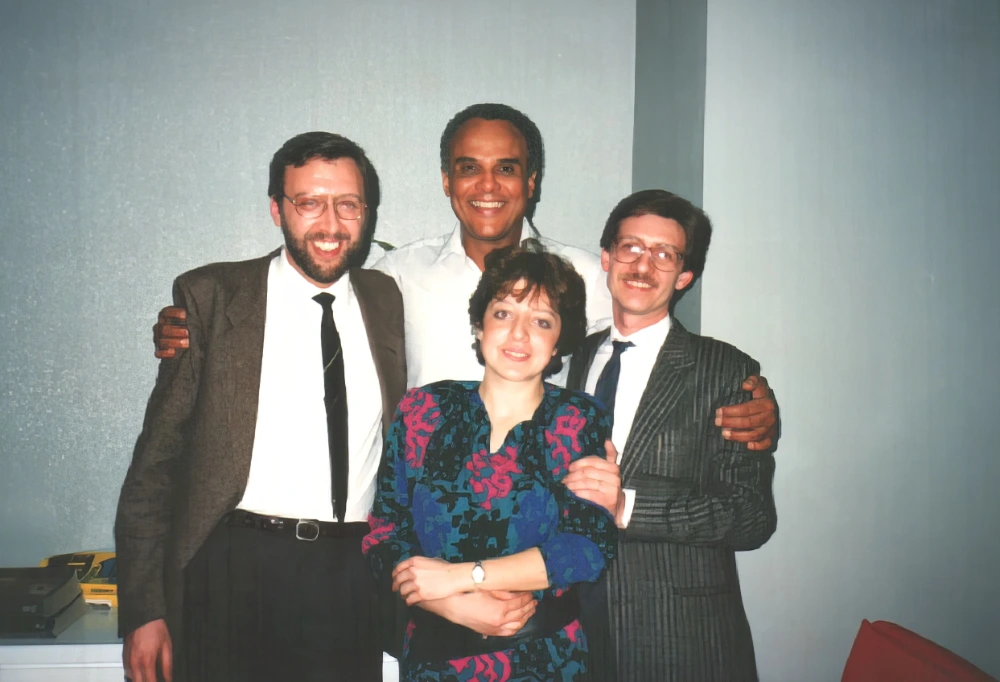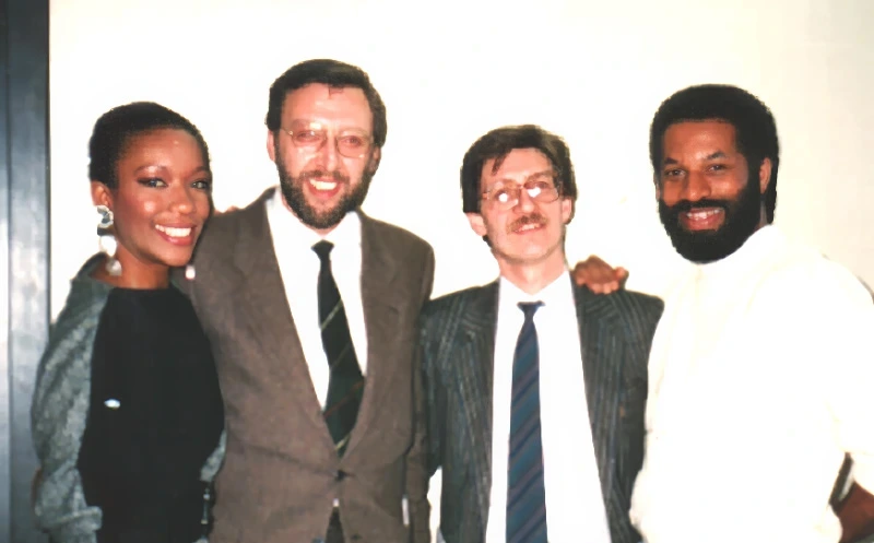 Jean-Marc, Tiziano, and Carlo with Mr. B. backstage - meeting for the first time in France, 1976.
